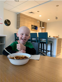 “Our family has been living at the Ronald McDonald House for several months,” said Mike C., another guest who is staying with his wife, Emily, and his son, Jack. “One of the things we miss most about our home in Virginia is cooking and eating family meals together. The appliances on the second floor allowed us to make our favorite chili recipe together and enjoy eating it while watching football on a Sunday afternoon.” He added, “The refrigerators in the rooms are also so important to our family. Jack takes many medicines, some of which need to be refrigerated. We also use them for Jack’s favorite perishable snacks. Jack’s immune system is severely compromised so everything he uses must be thoroughly cleaned daily and we must eat all of our meals in the room. The dishwasher allows us to relax as a family in the evening rather than cleaning everything by hand.”