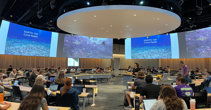 The CCCB is a state-of-the-art instructional facility that houses over 1,400 classroom seats and is designed to support large innovative and interactive classes. The building includes multiple flat-floored, team-based-learning classrooms with 132, 150, and 162 seats, a unique 190-seat ‘classroom in the round’ and over 350 informal seats throughout the building for students to study and collaborate with each other.