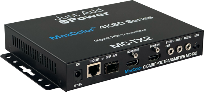Just Add Power’s multi-award winning MaxColor 4K60 Series 2 solutions include all the features and benefits of the MaxColor 4K60 Series 1 products, with even more capabilities to support most robust applications. With the MaxColor Series 2, 4K60/4:4:4/36-bit-color video can be distributed over a 1GB managed network using CatX (Cat 5e minimum) cable or fiber cable, so integrators can use the cable that best fits their projects. It also boasts power over USB-C that can support KVM ora USB web camera signal over IP. With the new ARC feature from Just Add Power, installers can easily send audio from a TV connected to a MaxColor 2 receiver across the network to another MaxColor 2 receiver — connected to an audio-video receiver or another ARC-enabled amplifier — making project design even easier and more flexible. Its ARC and USB features make it ideal for home office, gaming, or Twitch streaming setups.