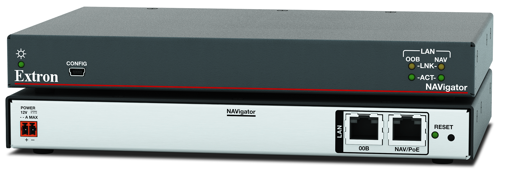 Extron enables third-party control of NAV Pro AV over IP platform through free NAVigator LinkLicense for Third-Party Control, allowing secure Shell interface, NAVigator System Manager, and secure switching of encoders and scaling decoders.