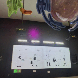 On level three, the “Mysteries of Mind and Body,” “Digital Art,” and “Communications Technology Pavilion” bring science to life through special-shaped projection, immersive displays, and interactive projection mapping. In “Mysteries of Mind and Body,” highlights include “Embracing Nature”—an ultra-wide 15,200 x 4,000 mm display powered by Christie DWU960-iS projectors—and the interactive “Big Monster Projection”, featuring a 6,435 x 2,600 mm image using DWU860-iS projectors. These exhibits invite visitors to explore scientific concepts by interacting with natural landscapes or game-like environments.