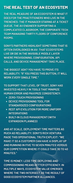 After looking at Sony’s model and hearing from some of its closest ecosystem partners, several high-level lessons apply directly to IT and AV professionals building their own organization’s technology strategies:
