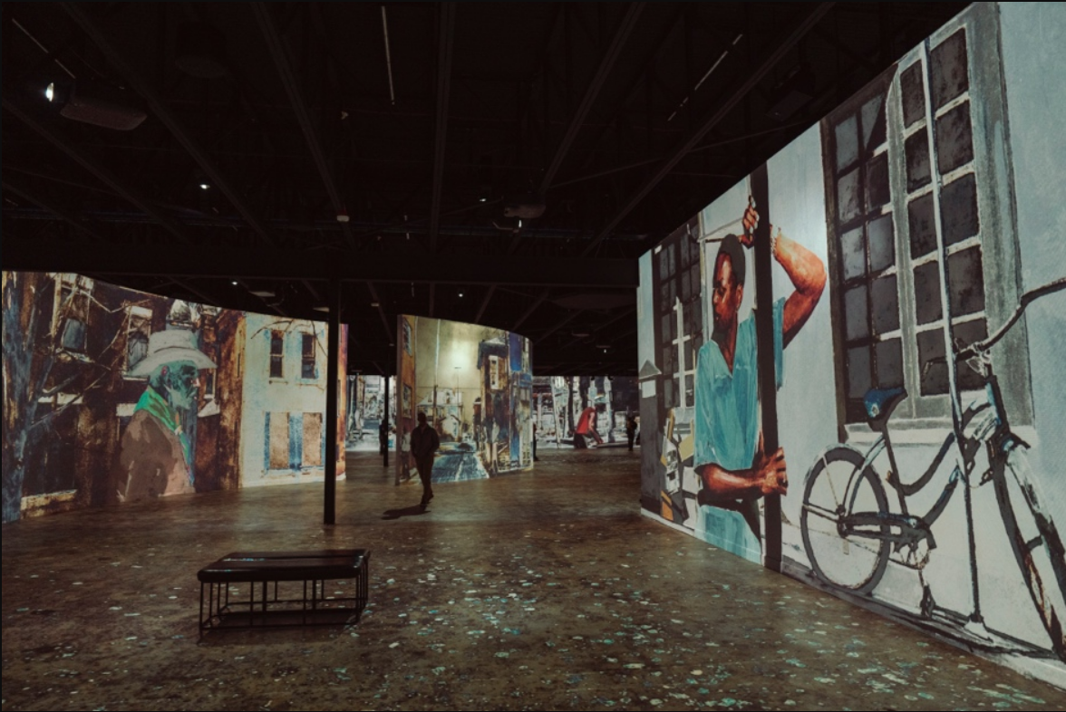 The journey continues through the Mez Gallery Two, a curved projection gallery of Mitchell’s portraits and landscapes, arranged from 400 high-resolution images to form a visual narrative on community, dignity and empathy. Experiencing his work at this scale moved Mitchell deeply, revealing every brushstroke and emotional detail in a way he’d never seen before. “It was incredibly emotional for me; the color, the clarity – it’s astonishing. Everything is so sharp and alive,” said Mitchell.