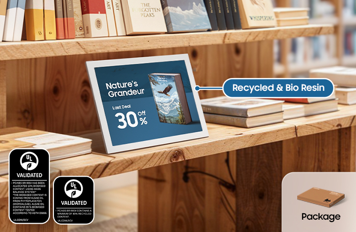 Building on the success of Samsung’s 32-inch Color E-Paper, this new 13-inch model expands deployment possibilities. Organizations can deploy digital signage to more locations and use cases than ever before, from small counters and doors to high-traffic public spaces, while maintaining consistent, high-quality visuals and ultra-low power operation. Unlike static printed signs, the Color E-Paper content can be refreshed instantly, reducing the expense and time put toward regularly replacing paper signage – no more ordering, printing or manually replacing signs for promotions, menus, schedules or updates. Plus, flexible mounting options1 make it easy to reposition displays as layouts or promotions change.