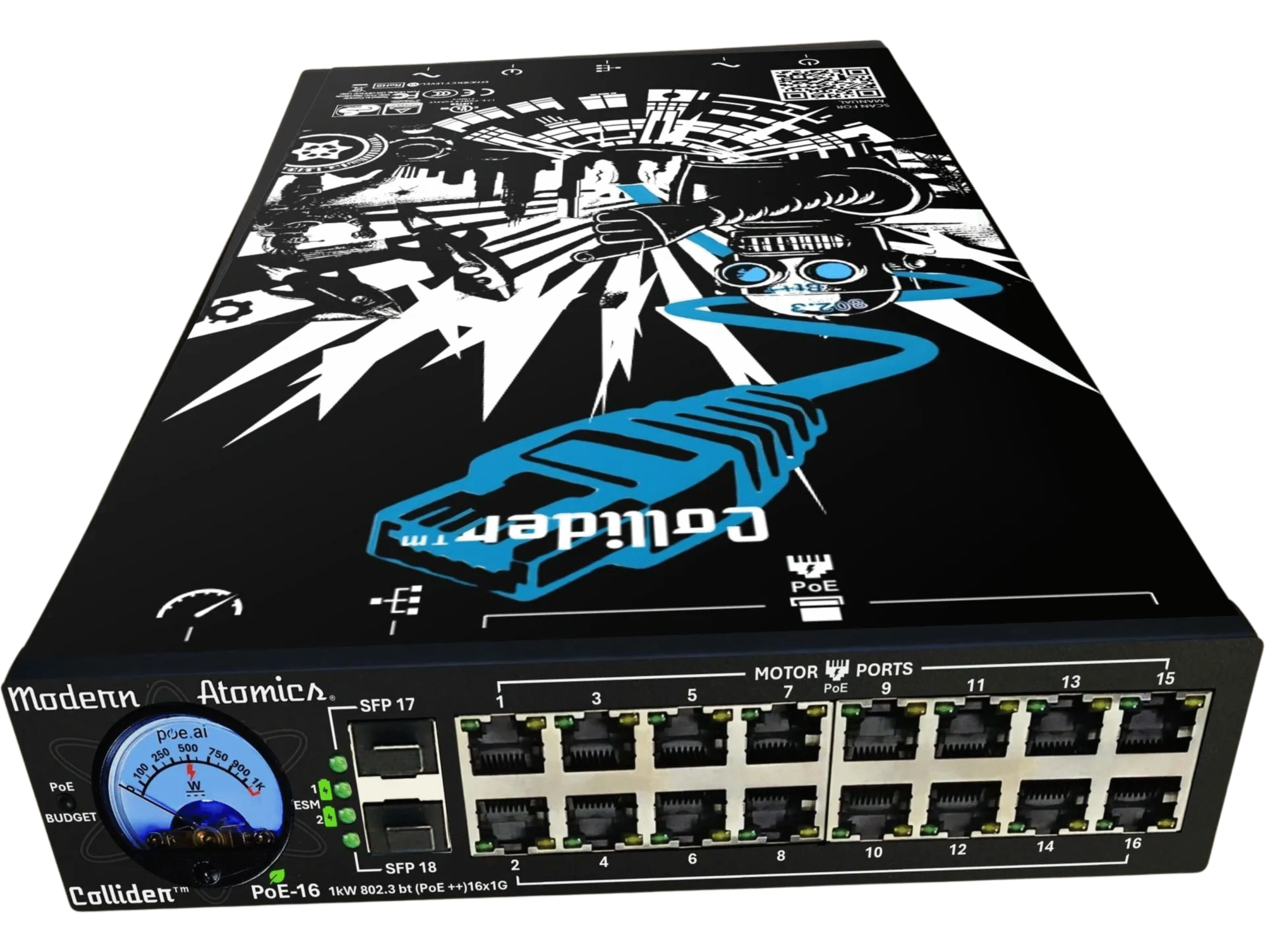 Con el futuro de PoE en mente, Modern Atomics presenta Collider. Basado en Reaktor, la primera versión disponible será un switch Gigabit bt++ de medio rack, un kilovatio y 16 puertos para motores PoE. Esta PDU ofrece opciones redundantes de CA y energía solar, puede regenerar su propia energía y almacenar energía durante 3 semanas. Además, cada uno de sus 16 puertos puede generar 90 vatios de potencia simultáneamente. No se requieren conocimientos de redes para su instalación. Envío en diciembre; precio de venta sugerido desde $2,999.