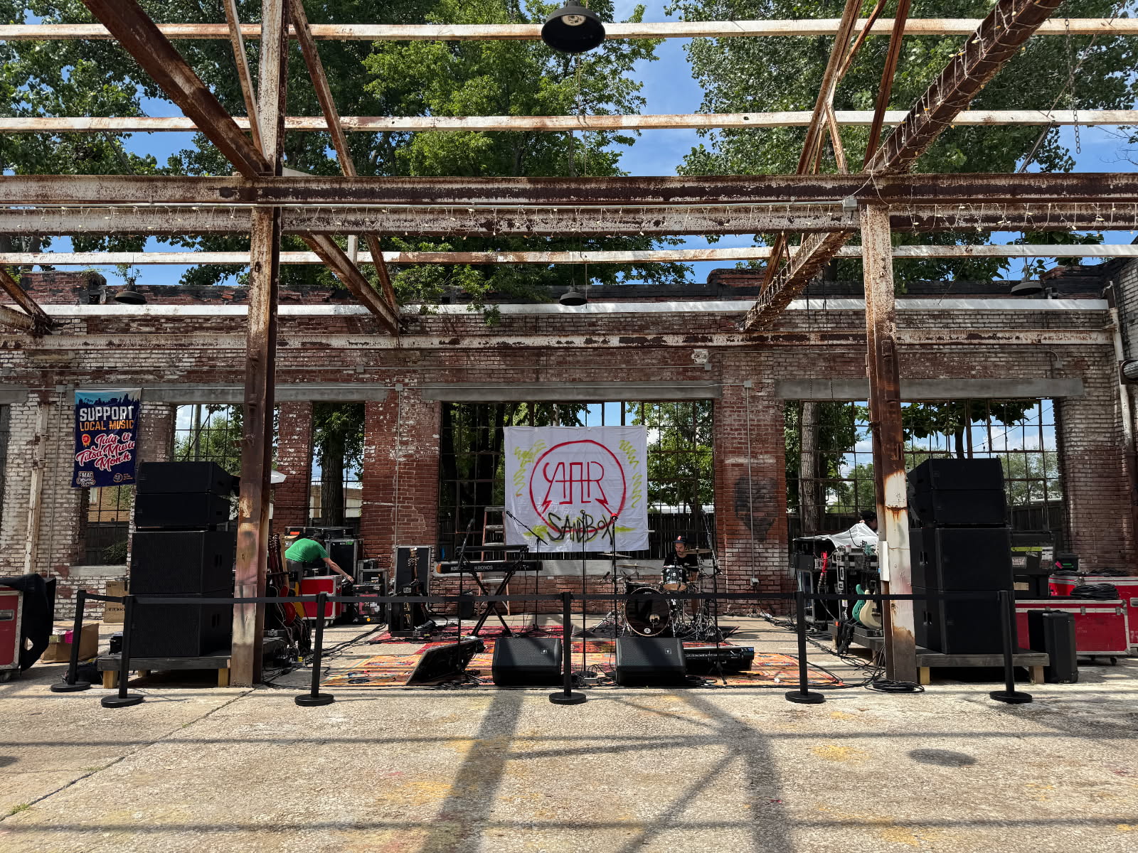 Uno de los desafíos más inesperados que Goers enfrentó fue el suministro eléctrico. "Todos estos espectáculos temporales han sido una pesadilla eléctrica", dijo. "En nuestro último espectáculo en Tulsa, nos dijeron que todas las tomas de corriente eran circuitos dedicados. Más tarde descubrimos que todas estaban conectadas a un solo circuito. Toda la alimentación de los altavoces y la línea de fondo estaba conectada a un solo circuito de 20 A".