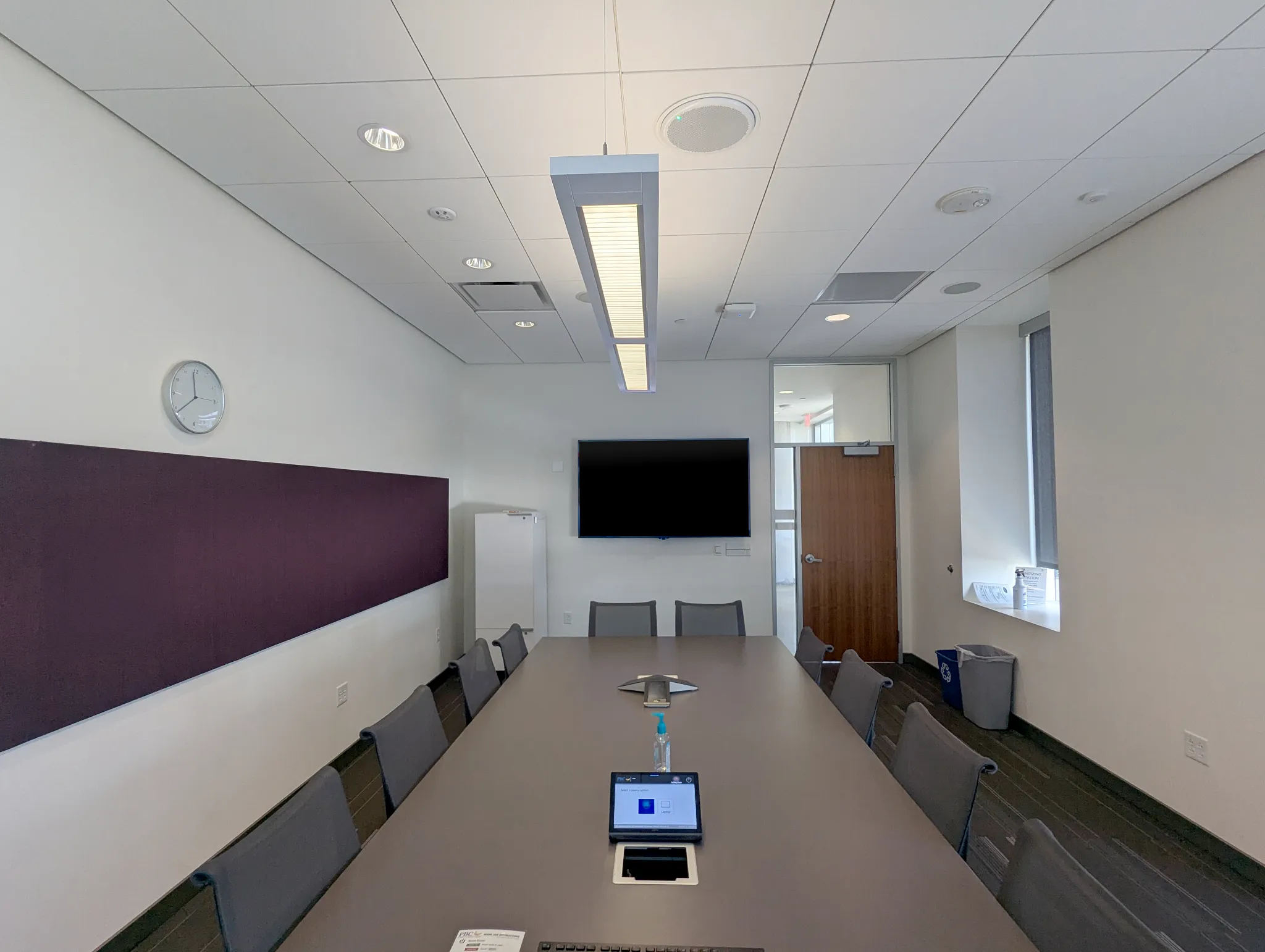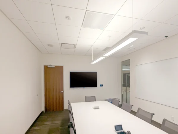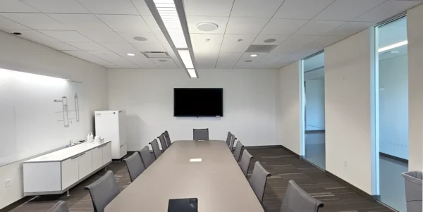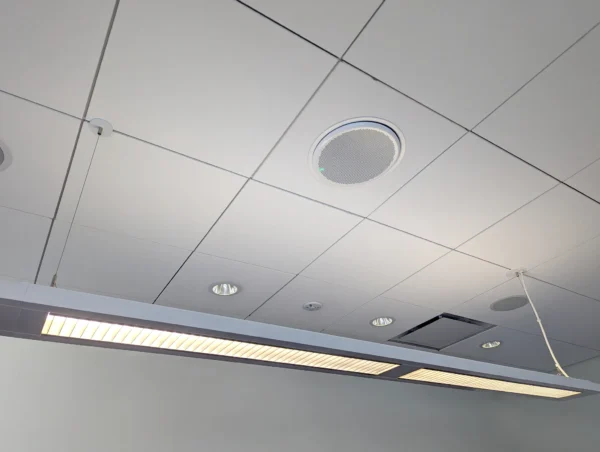El sistema de techo integrado MXA902 con micrófono y altavoz, combinado con el ANIUSB-MATRIX, resultó ser la solución ideal, ofreciendo audio de alta calidad mediante una sencilla instalación en el techo con una única conexión de red. Con todos los equipos y cables de soporte perfectamente organizados detrás del televisor, la configuración se mantuvo elegante y compacta. El diseño integral del MXA902 garantizó un audio claro y consistente en toda la sala. Esta actualización transformó la sala de reuniones en un espacio altamente funcional, permitiendo al profesorado realizar simulaciones y consultas con mínimas interrupciones técnicas.